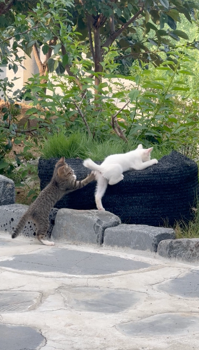 지금은 세 마리의 귀여운 아기 고양이와 함께 지내고 있습니다.